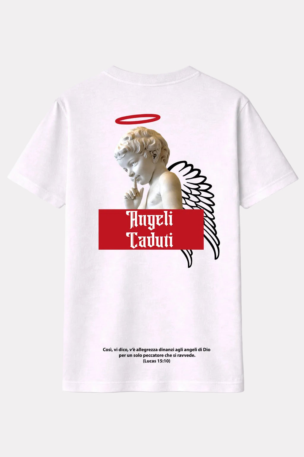 Wear your faith in style with this elegant t-shirt. On the back, it features the verse from Luke 15:10: “There is joy in the presence of the angels of God over one sinner who repents,” accompanied by an artistic design of an angel, symbolizing protection and divine guidance.
